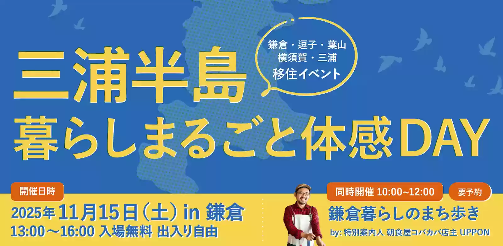 三浦半島「暮らしまるごと体感DAY」鎌倉で11/15開催先輩移住者の本音トーク&相談ブースで“三浦暮らし”に一歩