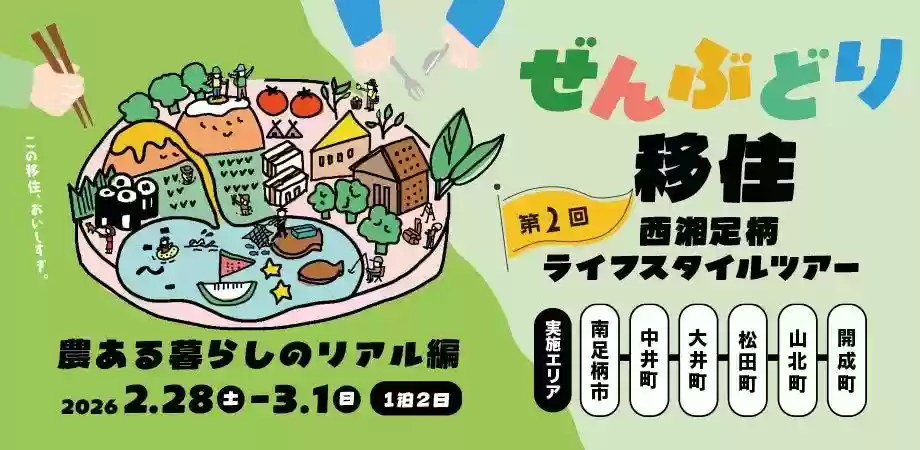 - 2/28(土)1日目: 中井町(周遊・移住者トーク)→ 山北町(駅前散策・交流ランチ)→ 南足柄市(スーパー見学・拠点でトーク)
