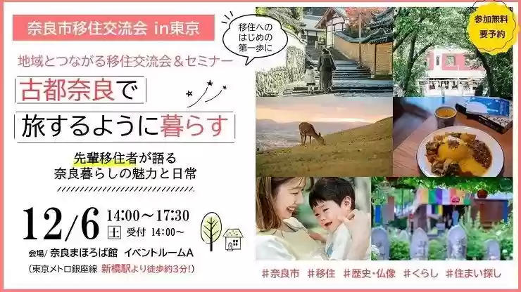 【12/6・新橋】奈良市移住交流会&セミナー|参加無料古都で旅するように暮らす——先輩移住者トーク&住まい相談