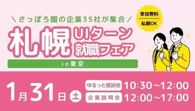 【札幌市】さっぽろ圏35社が集結!UIターン就職フェアin東京(1/31)ゆるっと座談会×企業説明会で、札幌近郊への転職・移住を一気に前進