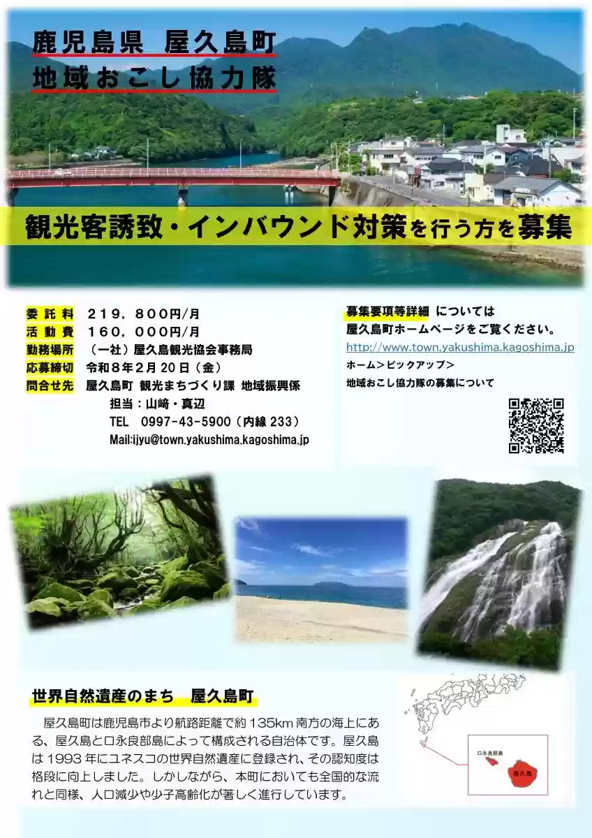屋久島町で地域おこし協力隊を募集世界自然遺産の島でまちづくりに挑戦する1名を募集