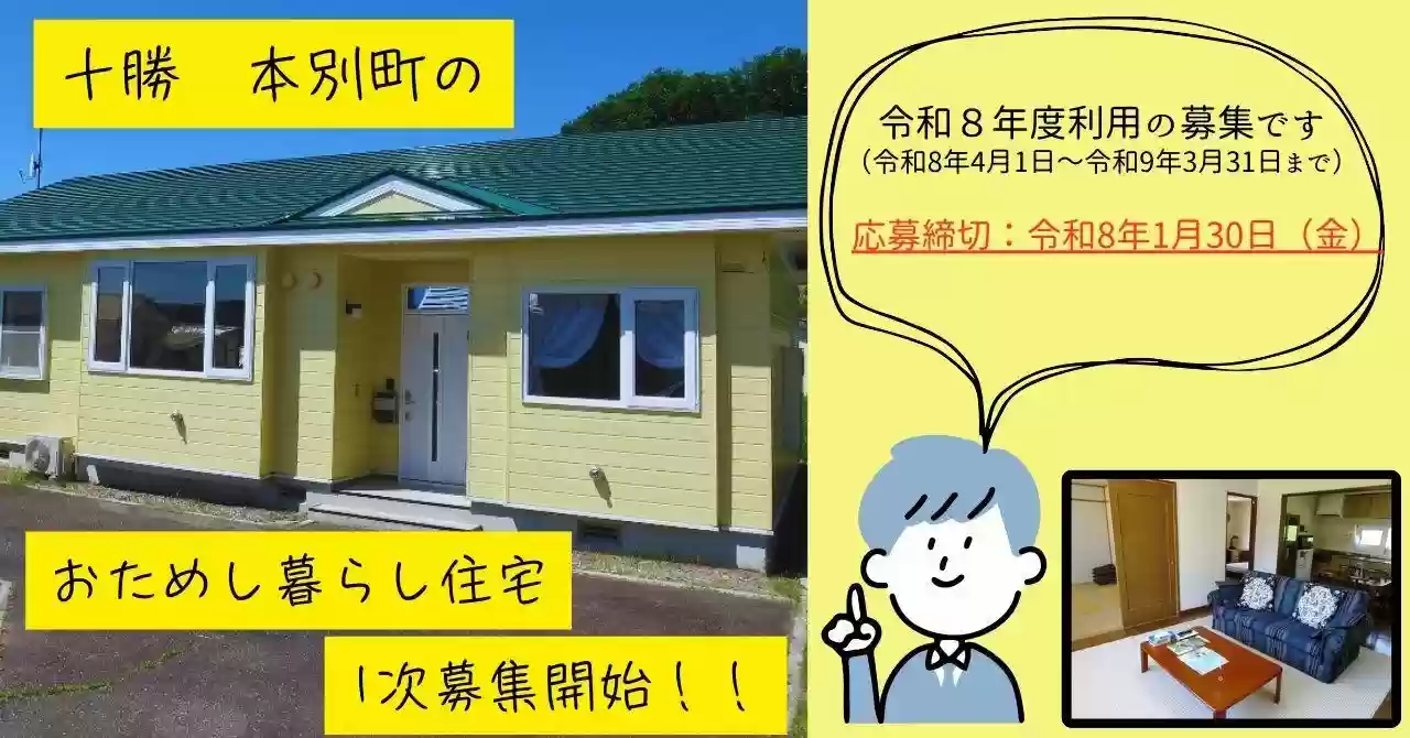 【十勝・本別町】おためし暮らし住宅(市街地区)令和8年度体験募集3LDK×Wi-Fi付き!まずは1週間〜“住む十勝”を試そう