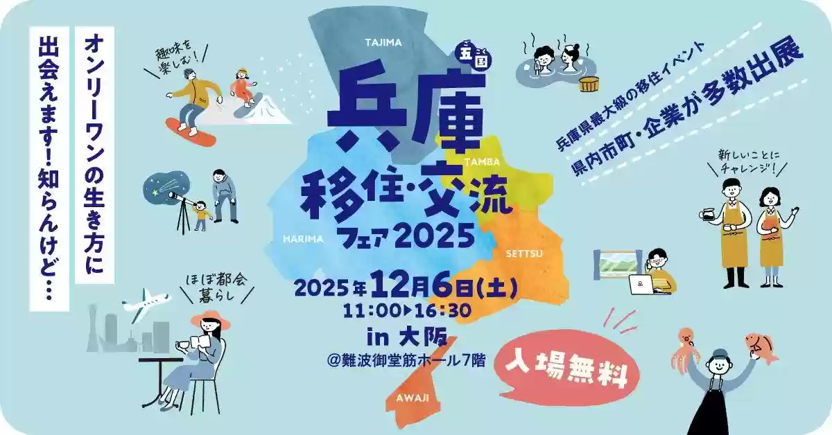 <12/6開催>兵庫五国移住・交流フェア2025 in 大阪|入場無料県内市町&企業に一日で相談!来場特典・キッズスペースあり