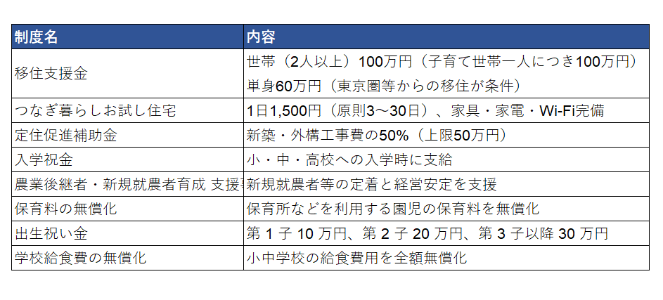 - 主な移住支援制度