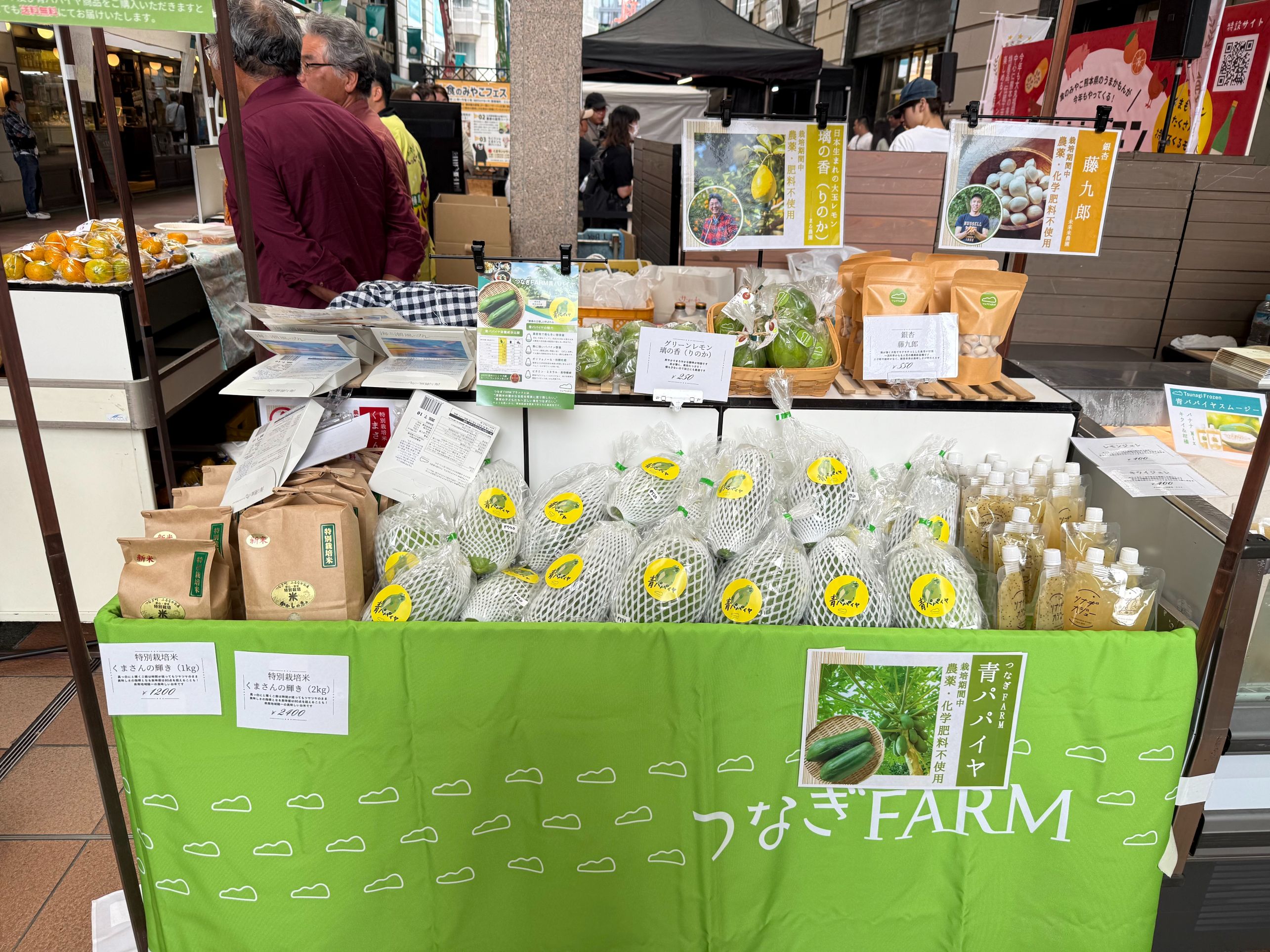 上原さん: 津奈木産の青パパイヤの認知度向上にも力を入れていました。まだあまり知られていない食材なので、地元のスーパーに専用コーナーを作ってもらって、手に取りやすい環境を整えたり、マルシェに出展したりと、「食べてみたい!」と思ってもらえる入口を増やすことを意識して動いていました。
