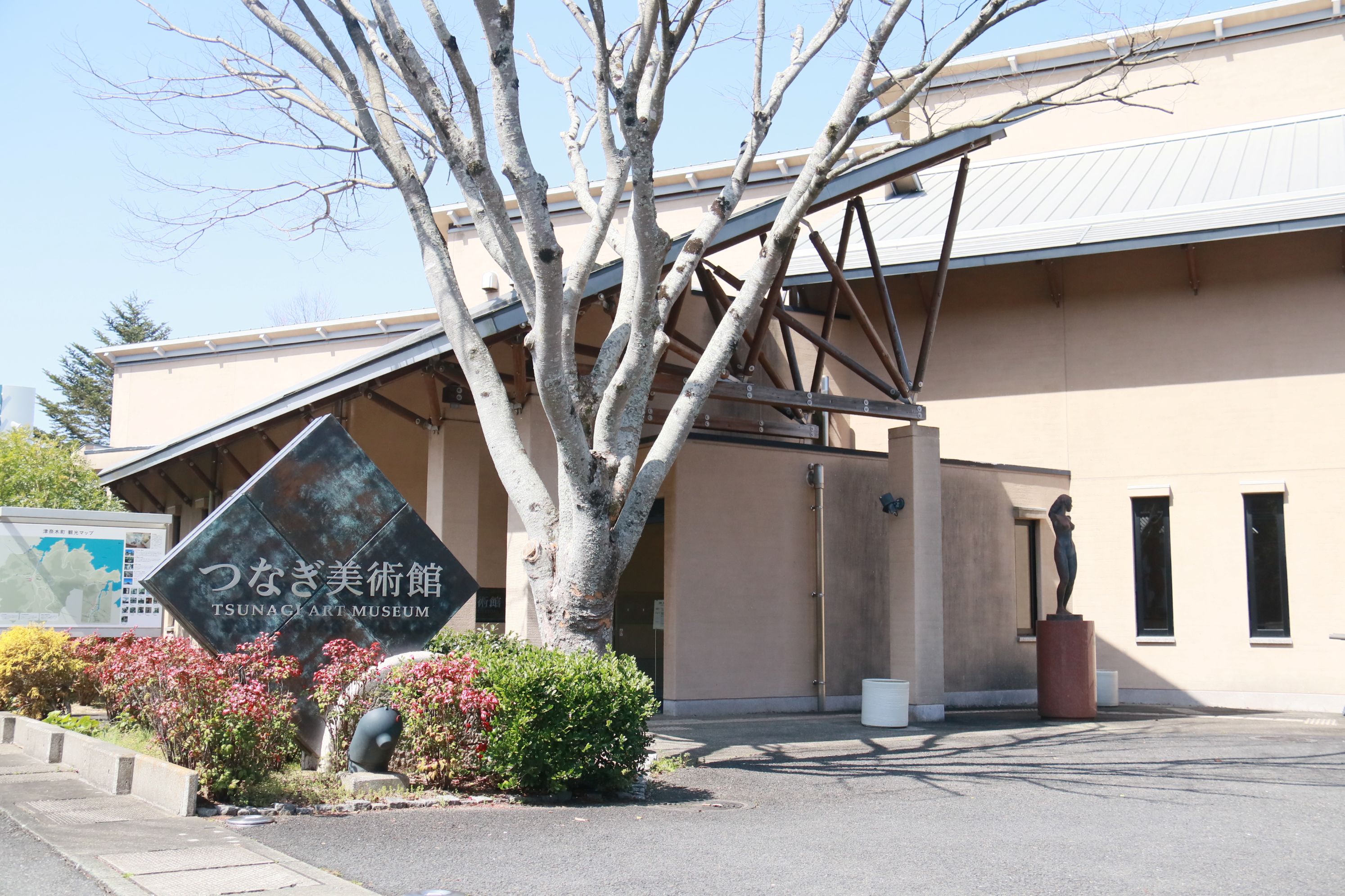 津奈木町の大きな特徴のひとつが、約40年にわたるアートによるまちづくりへの取り組みです。2001年に開館した「つなぎ美術館」は、熊本ゆかりの作家の作品を約450点収蔵する町営の美術館。館内展示のほか町の随所に屋外彫刻・常設アート作品が点在し、町全体がアートのフィールドになっています。また、農園を縫うように走るモノレールで向かう絶景露天風呂「つなぎ温泉ホテル四季彩」や、旧赤崎小学校を活用した「海渡り」も、この町ならではの体験です。